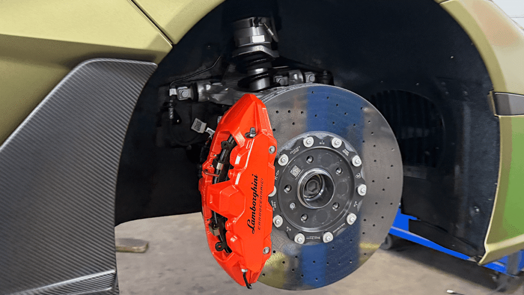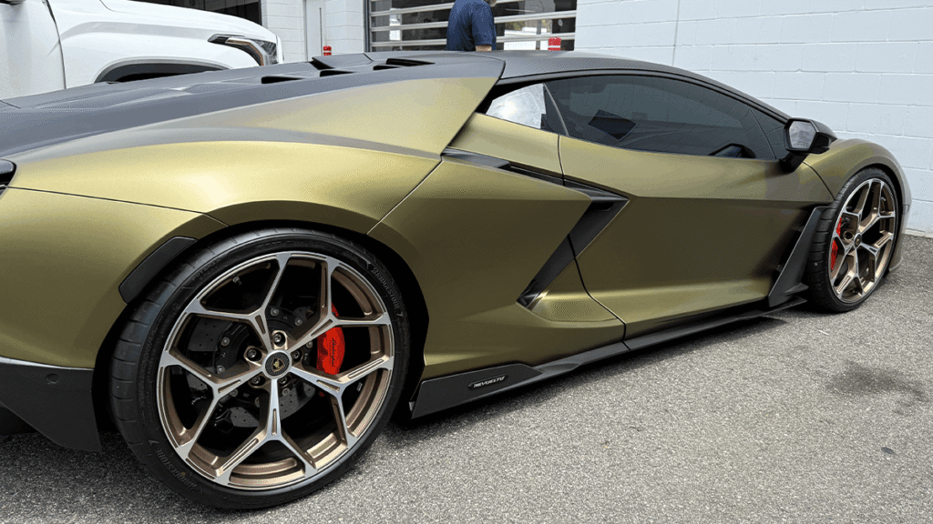 A 2025 Lamborghini Revuelto was brought into S&S Custom Exhaust & Automotive Repair in Jacksonville, Florida for a suspension upgrade focused on lowering the ride height and sharpening the vehicle’s overall stance and handling characteristics.